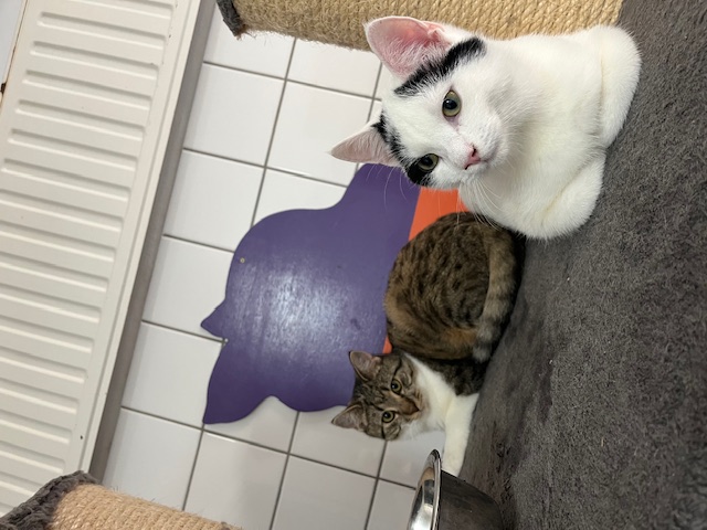 Maak kennis met dit charmante kattenkoppel dat elkaars tegenpolen lijkt, maar toch perfect in harmonie leeft. Silas (wit - zwart) en Kitah (cypers wit)