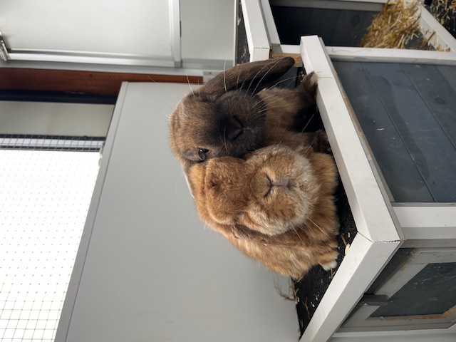 Deze twee knapperds zijn écht onafscheidelijk. Hun vriendschap begon op een bijzondere manier: op een dag besloot Sjors het donkere konijn dat hij niet langer alleen wilde zijn, klom dapper over het verblijf heen en sprong rechtstreeks naar de kant van Spikey, het lichtbruine konijn. Vanaf dat moment waren ze onafscheidelijk!