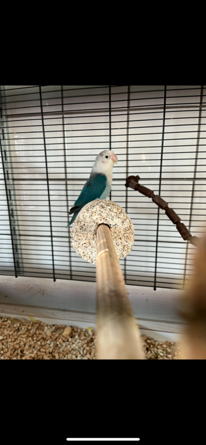 Mooie blauwe agapornis zoekt een nieuw huisje in een mooie voliere