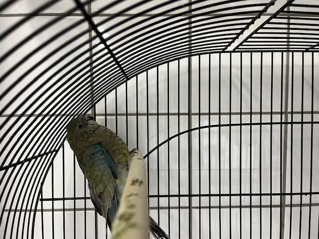Skippy zit samen met een Pyrrhura en zij hebben een haat liefde relatie. Skippy kan ook alleen geadopteerd worden in een voliere met andere maatjes.