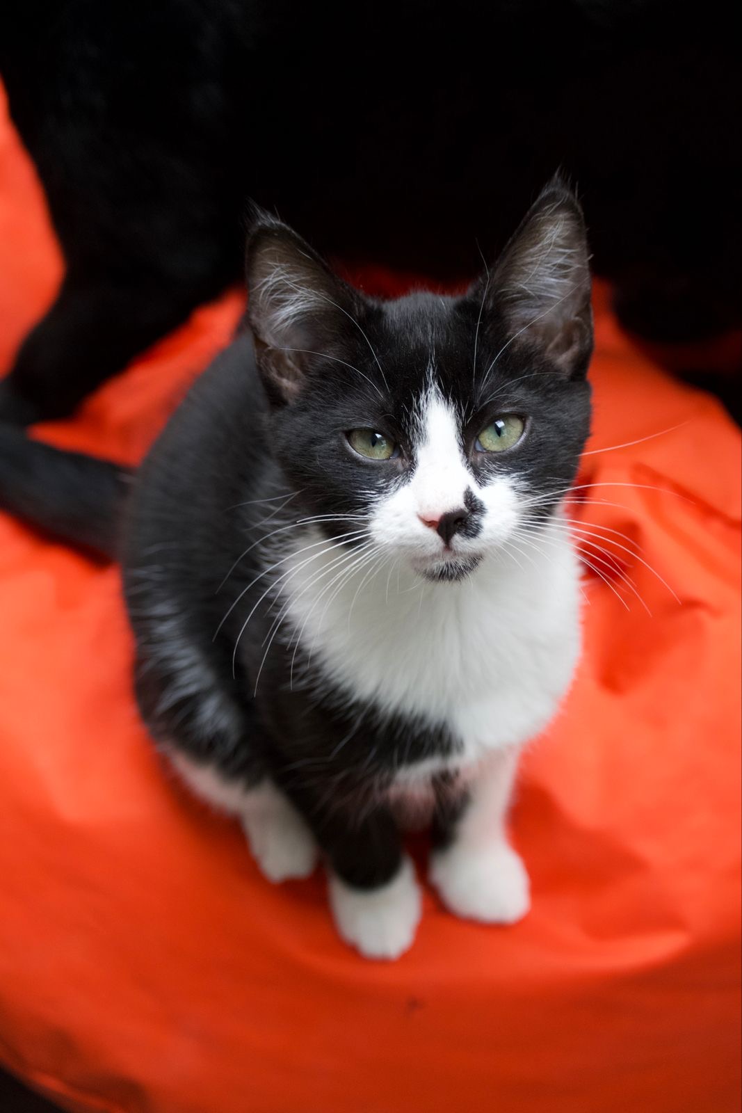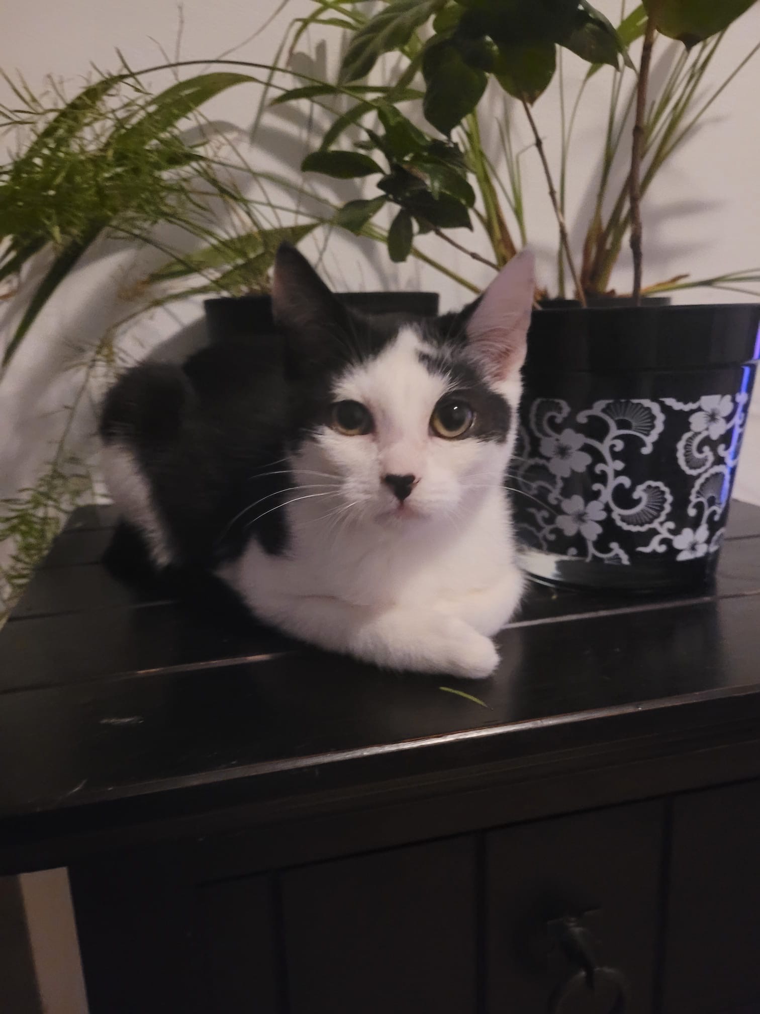 Deze knappe zwart-witte kat is een echte persoonlijkheid. Hij is nieuwsgierig, speels en houdt ervan om alles in de gaten te houden — niets ontsnapt aan zijn scherpe blik!