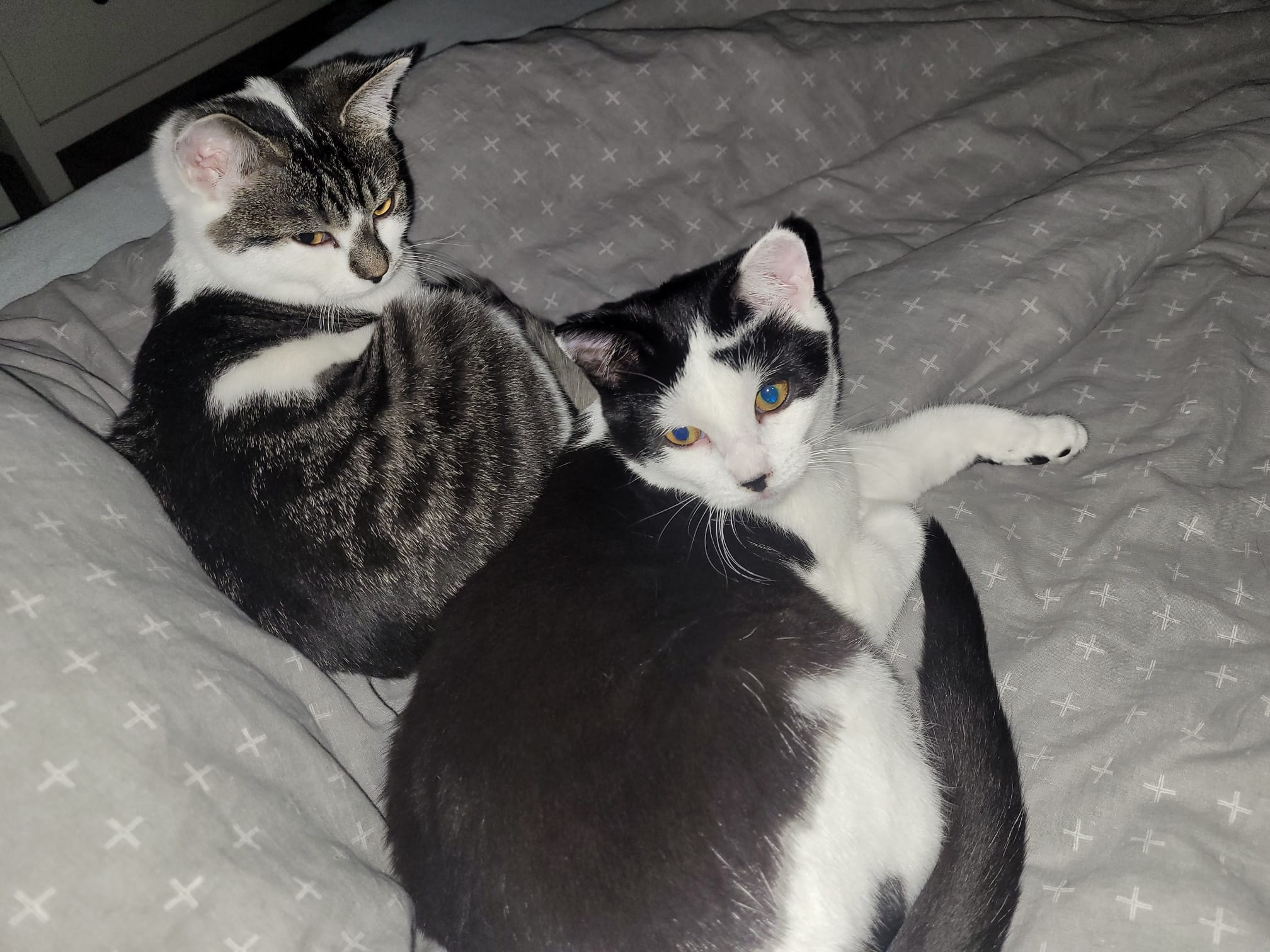 Maak kennis met dit charmante kattenkoppel dat elkaars tegenpolen lijkt, maar toch perfect in harmonie leeft. Silas (wit - zwart) en Kitah (cypers wit)