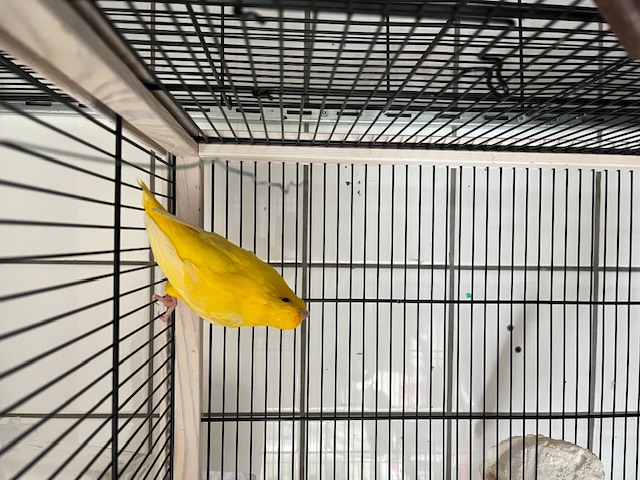 Skippy zit samen met een Pyrrhura en zij hebben een haat liefde relatie. Skippy kan ook alleen geadopteerd worden in een voliere met andere maatjes.